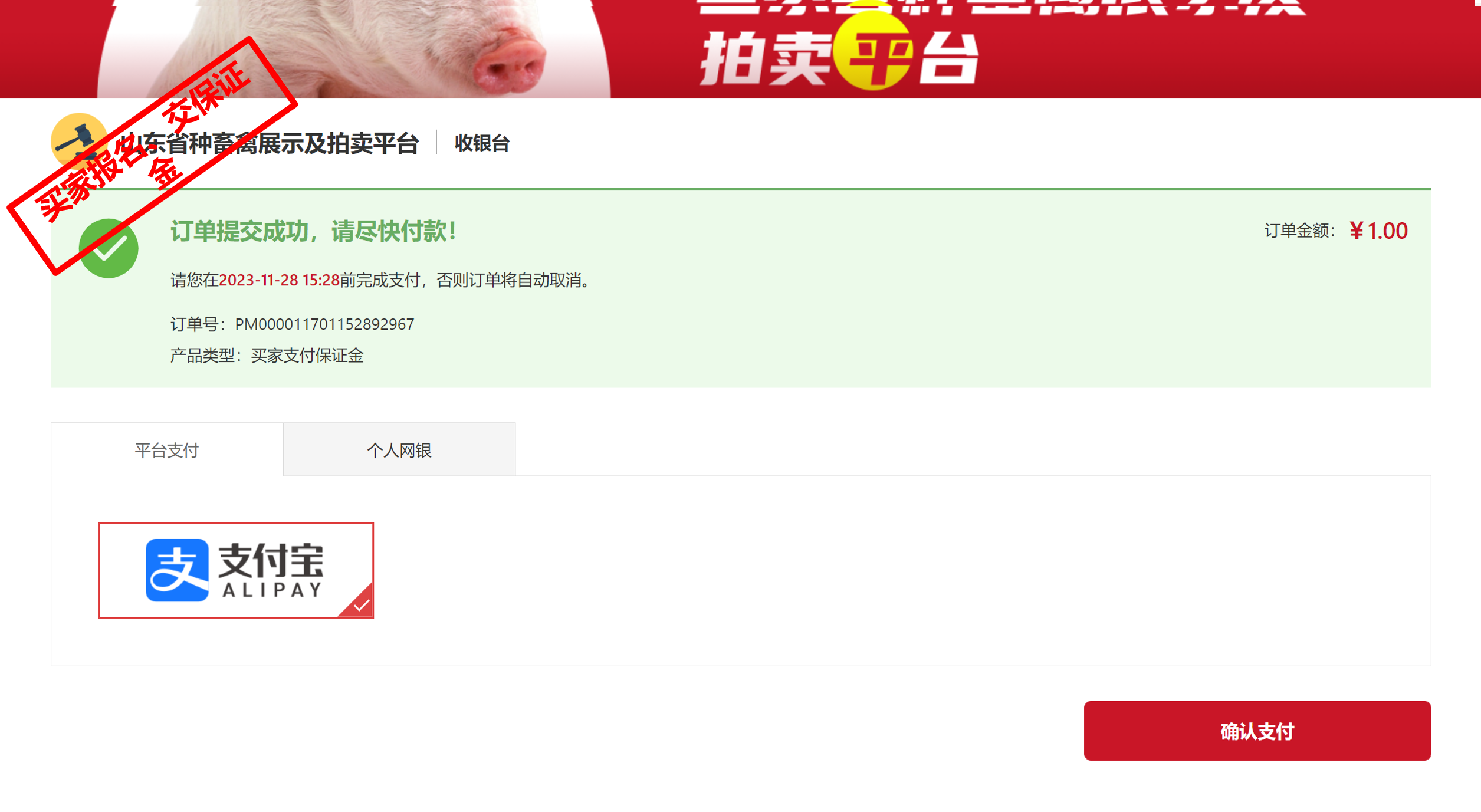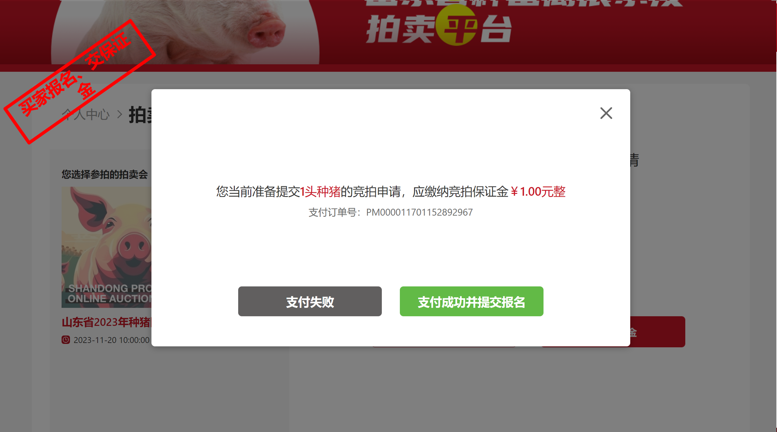 点击“缴纳保证金”按钮,进入交保证金环节。