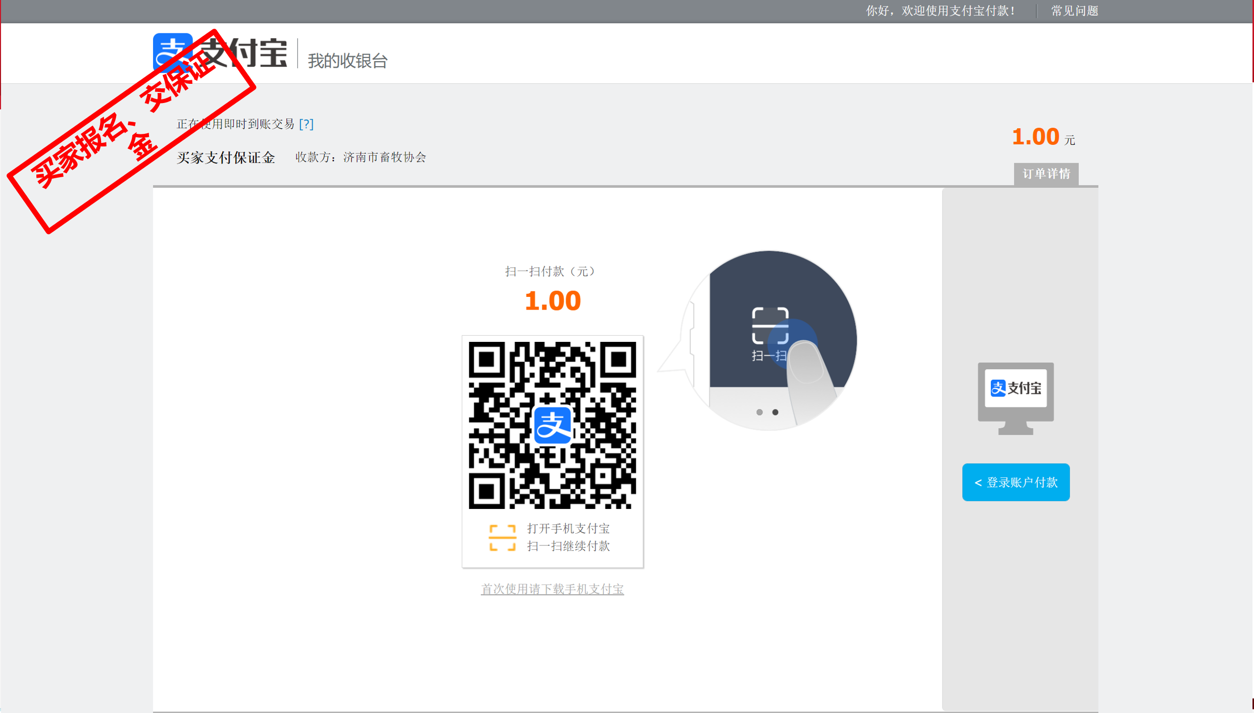 打开手机支付宝APP,点击“扫一扫”扫码,完成支付保证金。