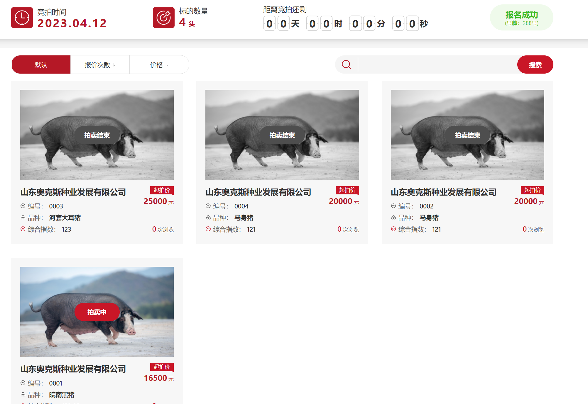 点击“拍卖中”的种畜禽,进入线上拍卖直播间: