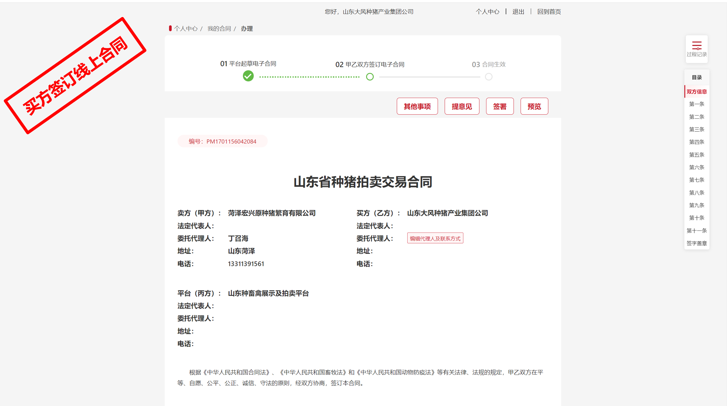 点击“办理”按钮,进入格式化的电子合同,如下图: