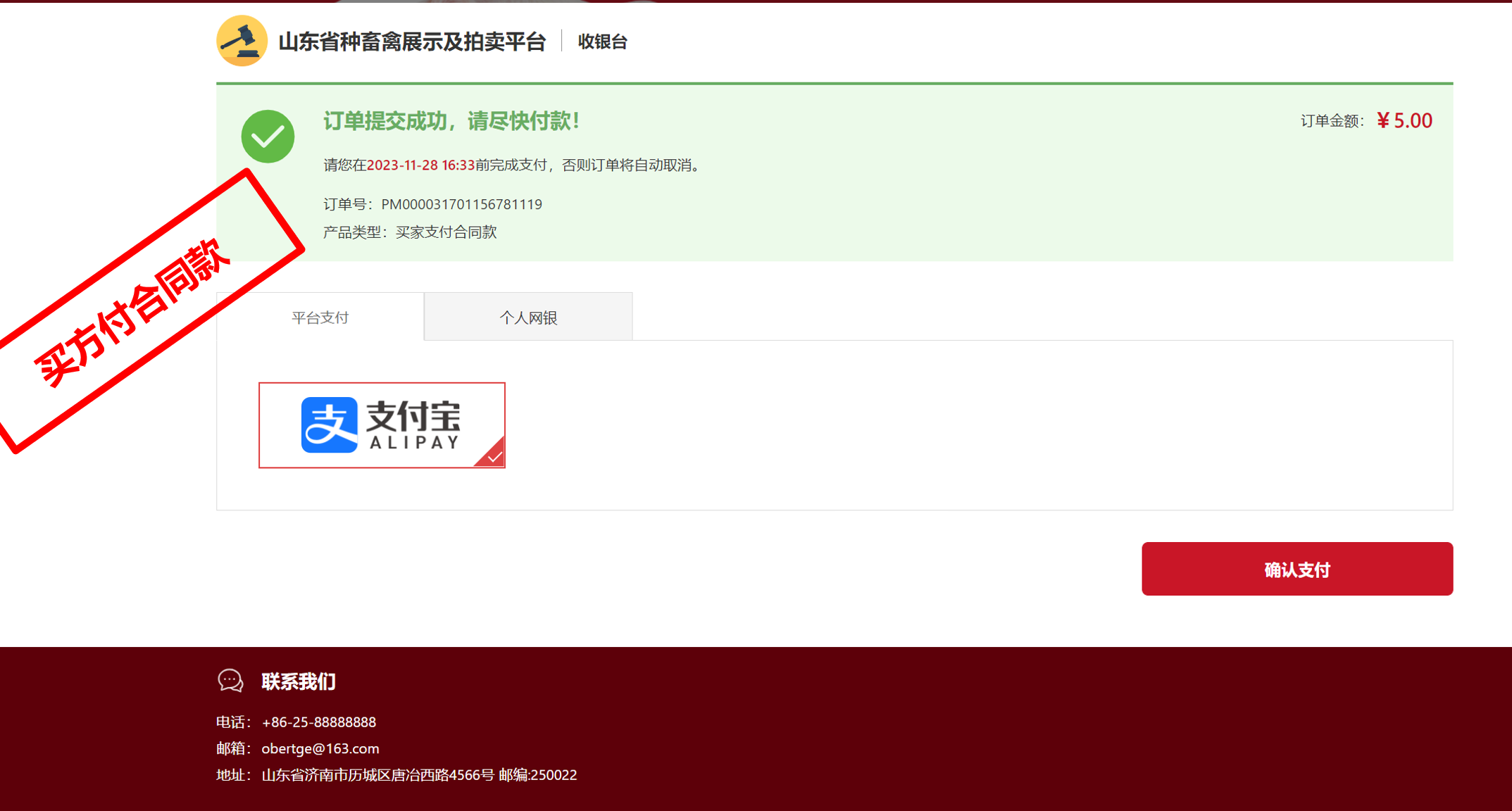 点击“缴纳合同款”按钮,进入在线支付环节。