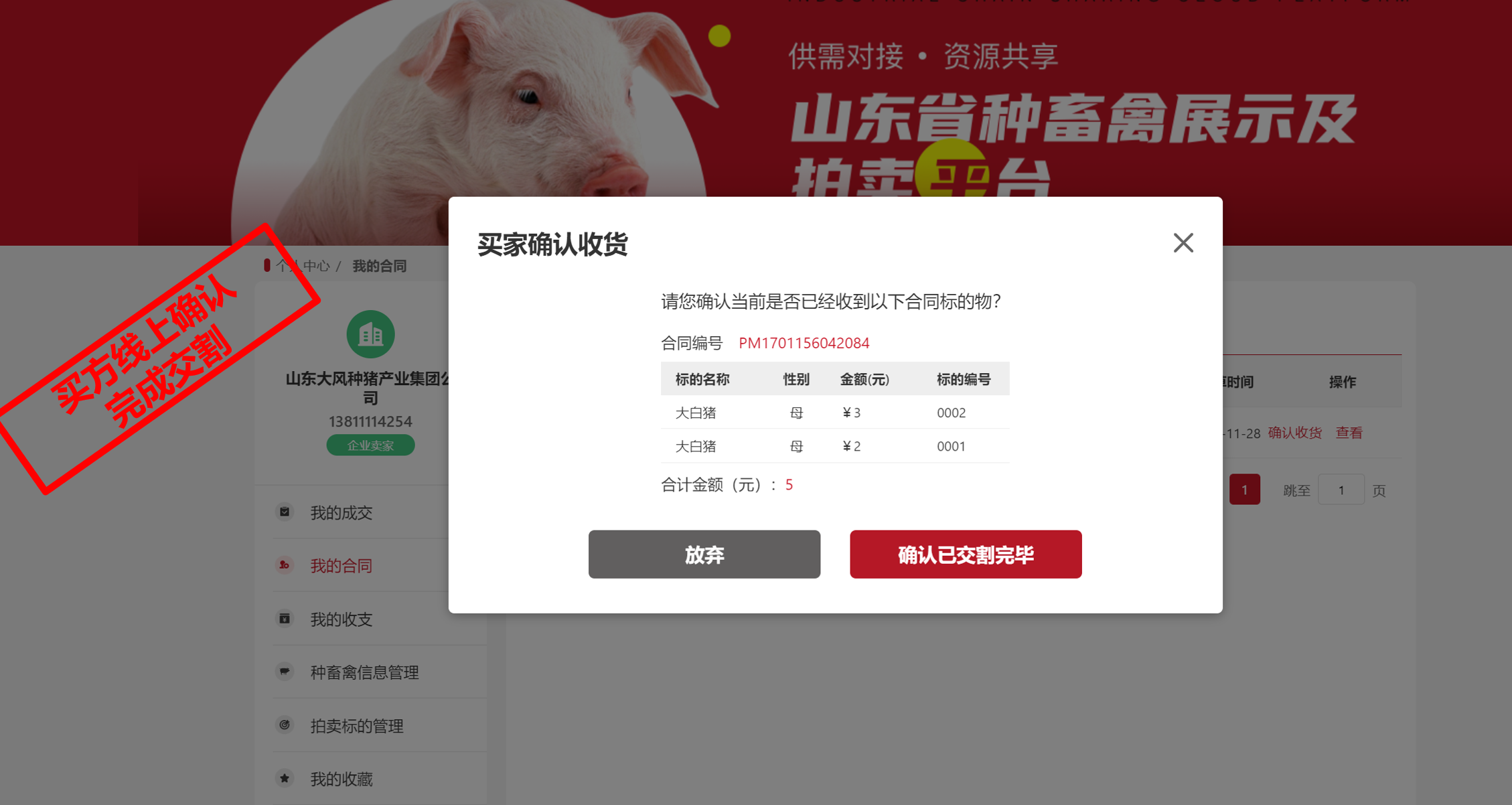 点击“确认已交割完毕”按钮,完成交割,在规定时间内,保证金按原路退还给中标竞买人。